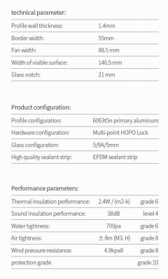 | Thermal insulation performance:2.4W/(m2-k) grade 6 | ||